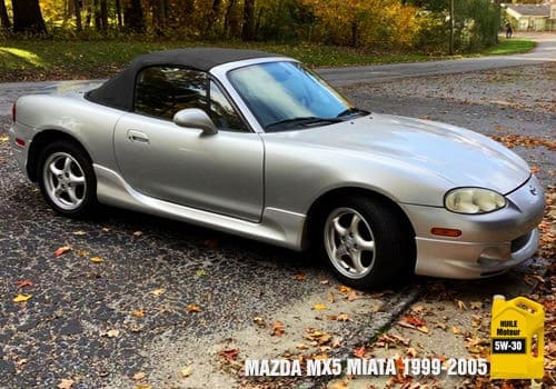 | Mazdaspeed MX-5 Miata 1.8 ( 104 kW) Moteur BP4WT (1999-2000) 5W-30 (CRE 4.0) (CRV --) Remplacement, normal 12 000 km 6 mois |
